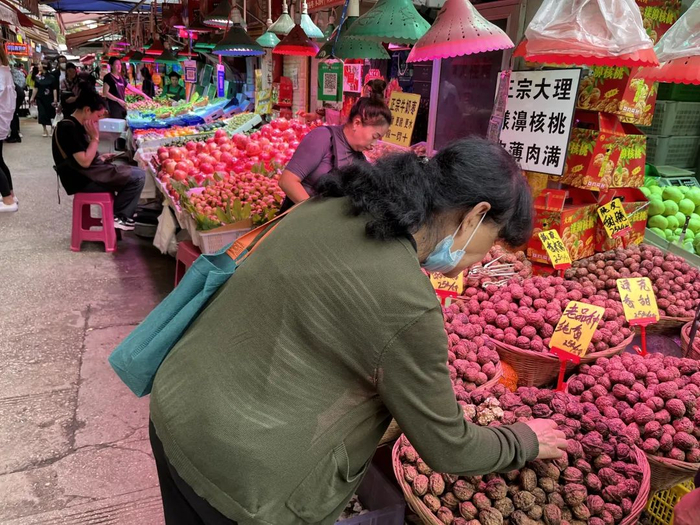 “板栗多少一公斤?”“20元。”商户普女士的板栗用两个竹筐装着,介绍牌上写着“老树板栗,又甜又糯”。普女士介绍,自家的板栗来自保山,8月就已经上市,除了线下售卖,她还在微信上销售,发往北京、上海等地。“板栗是应季产品,8月上市,11月就落潮了。周末人多时,一天能卖七八十公斤,但工作日人少销量就不稳定,一般中秋前一周生意比较好,毕竟吃板栗是过中秋节的传统之一。”