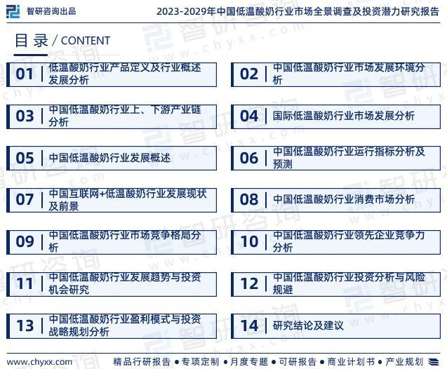 1、本报告核心数据更新至2022年12月,以中国大陆地区数据为主,少量涉及全球及相关地区数据;预测区间涵盖2023-2029年,数据内容涉及低温酸奶行业产量、市场规模等。