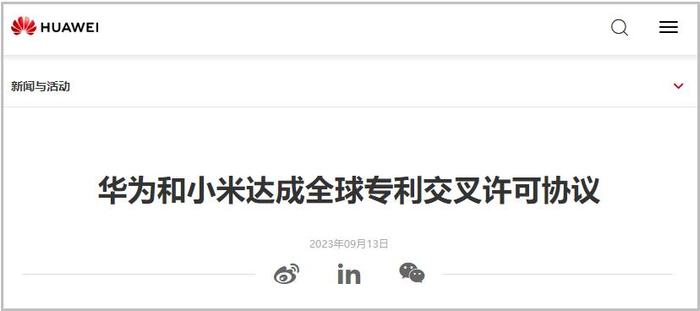 据华为官网消息,今日(13日),华为和小米宣布达成全球专利交叉许可协议,该协议覆盖了包括5G在内的通信技术。