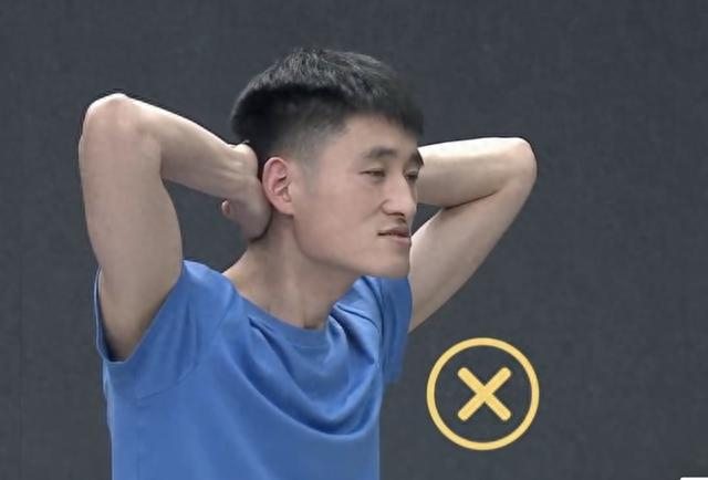 避免头部位移,整体要保持不发生位移的情况下,让下巴和颈椎进一步收紧,动作要缓慢。