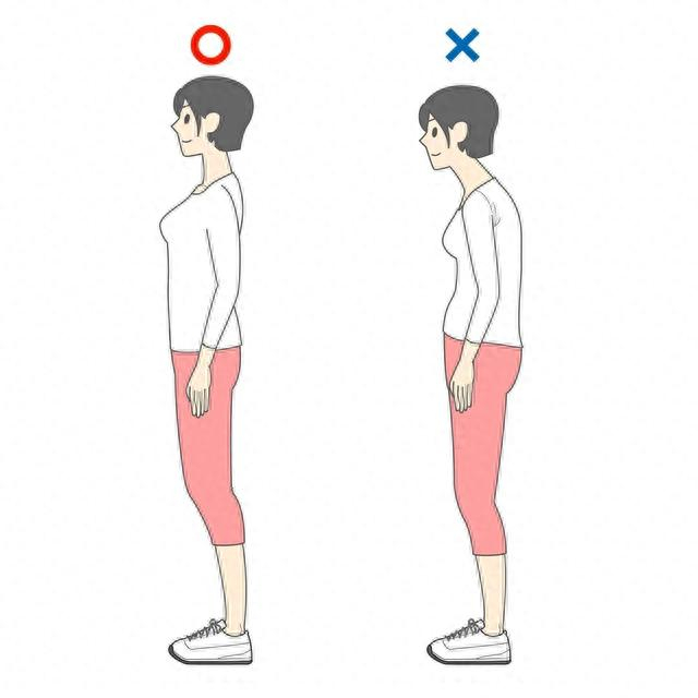 双脚与肩同宽,臀部紧贴墙壁,肩胛骨与墙壁接触。可以将肩胛骨向后挤压,以帮助肩膀更好地进入中立位,并对齐墙壁。然后检查自己的头部位置,如果后脑勺没有碰到墙壁,则显示是头部前倾姿势。