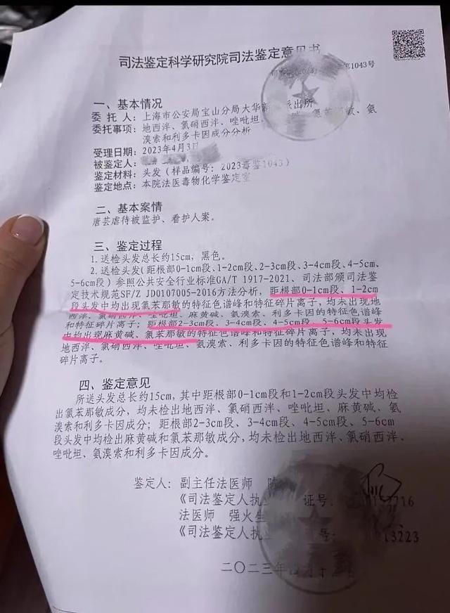 家长爆料的医院验伤单显示,幼童身上多处存在针尖样小孔,“家长们随即要求验毛发,结果,五个孩子都含有麻黄碱,其中有两个孩子含有利多卡因。”