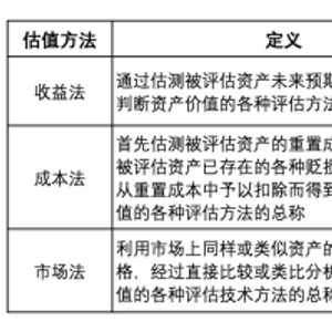 图:收益法、成本法和市场法的定义与当前适用问题 信息来源:清华大学互联网产业研究院,《财经》区域研究中心