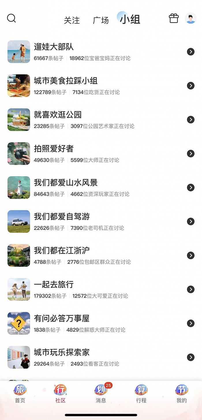 “小组”里则根据兴趣强标签划分出“遛娃大部队”“城市美食拉踩小组”“我们都爱自驾游”等,类似旅游版的豆瓣。