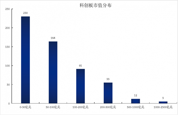 从市值分布上来看,科创板成份股的市值风格偏中小盘股。根据Wind数据,截至2023年9月13日,有394只科创板上市公司市值小于100亿元,数量占比为70.74%,其中230只科创板股票市值小于50亿属于微盘股范畴,只有5只个股市值达到千亿的水平。