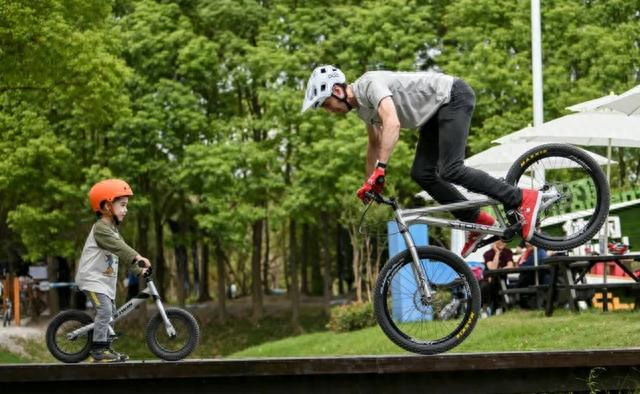 常驻商户看中了骑行的持续吸引力和骑行人群的购买力。“在这里,白天可以喝咖啡,晚上还有精酿啤酒。”负责自行车小镇的市场运营的刘辉告诉记者,目前这些商户的租金并不低,但仍有许多品牌和商户正在商讨入驻。继续朝里走,是Park Cycling的租车服务点和露营营地,如果想要骑行,山地车和头盔均可以在这里租到,如果想要休闲则可以在露营营地喝上一杯。在租车点旁边,是禧玛诺的维修小店,可以提供相关养护服务。右侧还有一条林荫道,通往迪卡侬的山地车展示和研发中心。刘辉说,迪卡侬的研发人员每周都会到这里进行办公,利用专业的山地车道对自行车相关产品的性能进行测试。再往里就是山地自行车赛道的场地,Park Cycling基于生态树林的原有环境,设置高中低三档难度,适合成人、青少年、儿童等不同类型骑行爱好者。