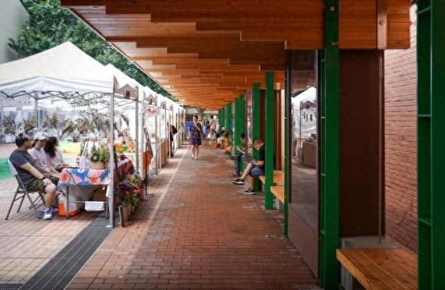 其中,武宁路桥的桥下驿站现已被改造成了一个开放式的“城市看台”,看台均由木板铺设,两端预留有休息室。看台一侧设有咖啡馆、自动贩售机、储蓄柜、公共卫生间。另一侧还留有一个“迷你展厅”,能灵活变动,可形成展览空间或舞台。