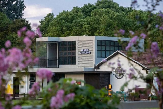 如果说,开设“驿站”和拓宽生活使用场景能让自行车消费更上一层楼。那么,Park Cycling自行车小镇则提示我们骑行空间或许还需要注重场景的包容度和灵活性。自行车小镇位于上海嘉北郊野公园内,从公园正门进入后向右转弯,就能看到一片大草坪和一排白色双层小楼。目前,这里已经配备了相对完整的商业业态和户外产业链。入口处的大草坪一般作为骑行活动的出发地,会在特定的日期举办户外市集,邀请相关品牌加入,让聚集在此的骑行人及其他伙伴找到更多乐趣。