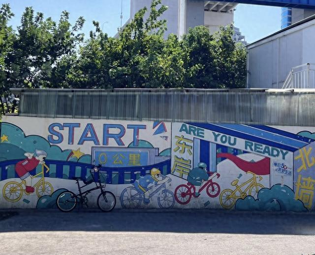 这条黄浦滨江东岸的骑行道全长约22公里,杨浦大桥下方是绿道起点,被称为“北墙”,徐浦大桥下则是终点“南墙”(现已外移2米)。