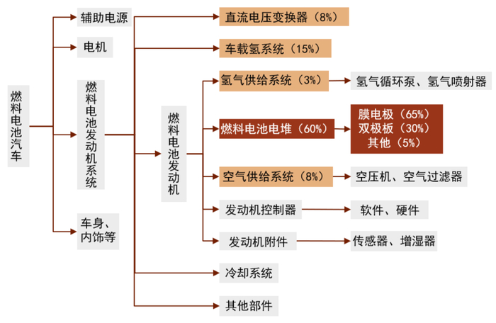 电堆核心结构为膜电极与双极板,电堆CR6为80%