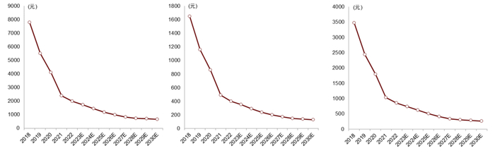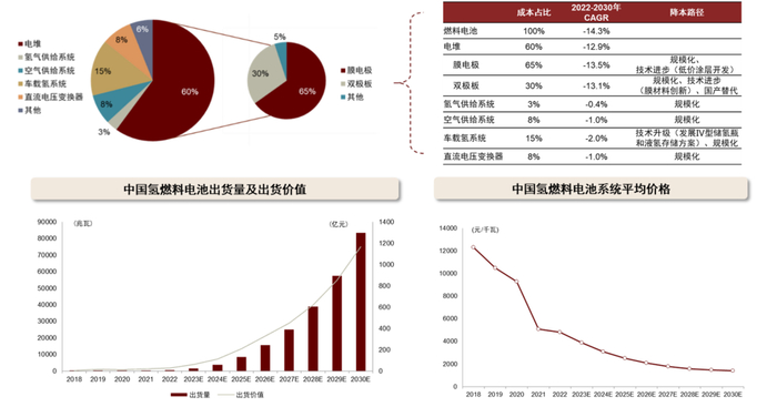 我们认为燃料电池降本靠电堆,预计到2030年年均降幅达14.3%