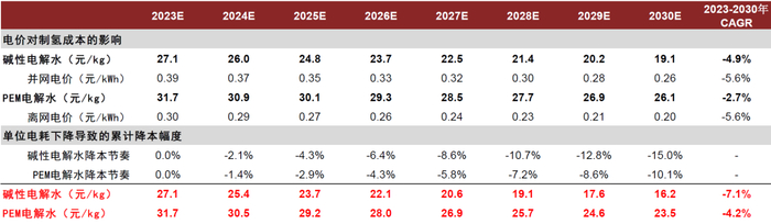 图表17:2023E-2030E电解水制氢成本测算
