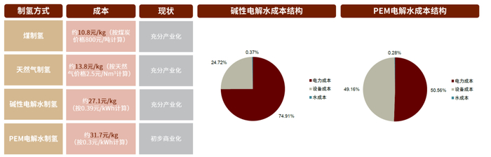 图表9:当前我国主要制氢方式现状及成本