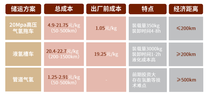 图表19:目前国内主要储运方案特点及经济性