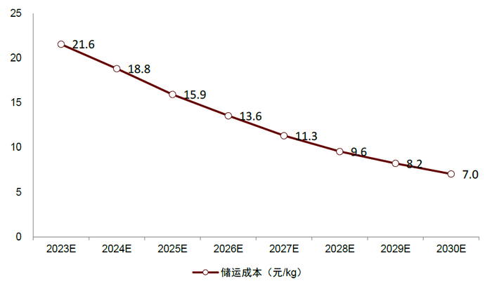 图表24:2023E-2030E储运环节降本趋势