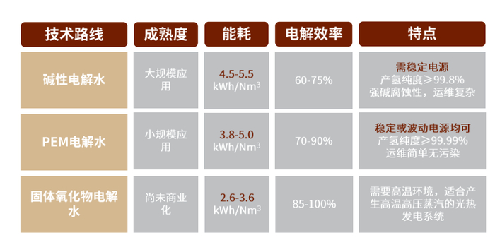 图表12:不同电解水技术路线对比