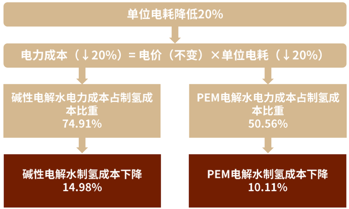 图表13:固定电价不变,单位电耗下降即为电力成本下降,进而降低制氢成本