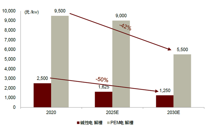 图表16:2020-2030年电解槽降本预测
