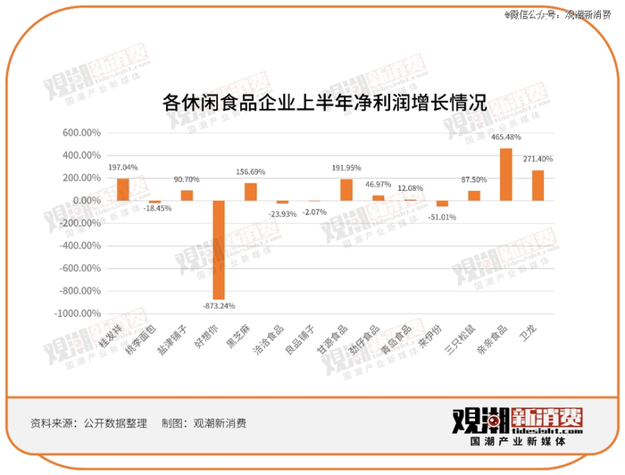 比如甘源食品,上半年实现营收8.26亿元,同比增长34.57%;归母净利润1.2亿元,同比增长190.92%。