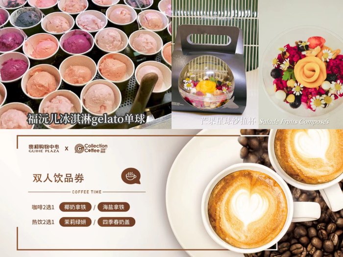 CINCIN咖啡-花魁汤力美式、IN THE MASS-满分美式、VILLA SHAKA Komorebi-光遇、窦十八咖啡-鹰嘴豆奶低因拿铁、吉派索咖啡馆-鸳鸯拿铁、熳家咖啡-豆奶Dirty、小山咖非-Dirty、宿道咖啡-胡子美式、汲萃咖啡- 西番莲冰拿铁、福沅儿冰淇淋-卡布奇诺gelato……
