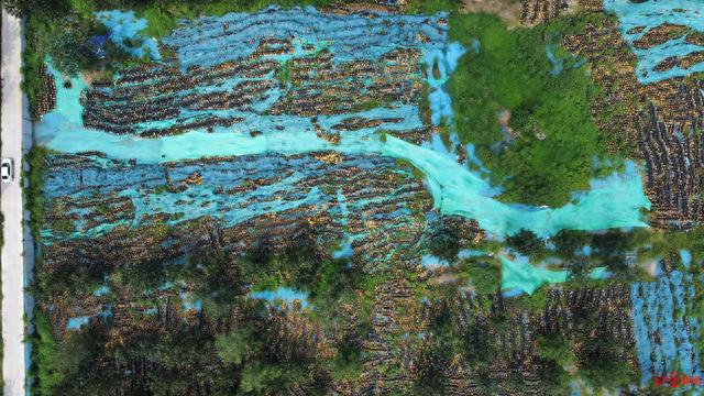 正定县是石家庄市的下级县,距石家庄约15里路程。在正定县“日日顺仓库”的停车场内,停放了近万辆美团的单车。临近“正定县河北捷胜建筑实业基地”的一处车场,停放了美团的车约两万辆。红星新闻记者掌握的航拍视频显示,一些共享电单车露天停放,此前覆盖的尼龙薄膜已破漏。