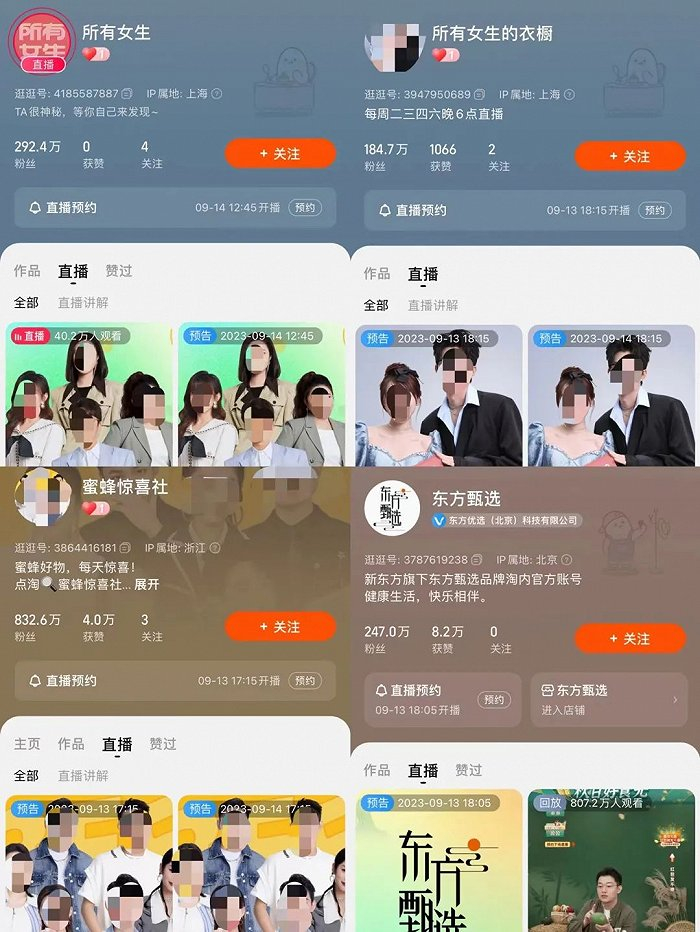 在淘宝,“所有女生”直播间粉丝为292万,但近期的场观仅在100万-150万人之间。“所有女生的衣橱”直播间粉丝为184.7万,近期的场观在200万-300万人左右。而李佳琦的主直播间,场场都显示的是1000万+。