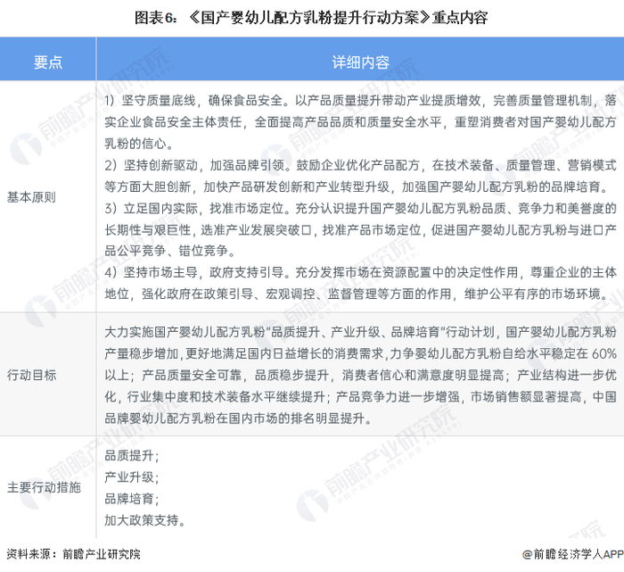 婴幼儿配方奶粉一直是社会也是国家关注的重点领域,同样是奶粉市场中最关键的一部分。2019年,国家发展改革委、工业和信息化部、农业农村部、卫生健康委、市场监管总局、商务部、中国海关总署等国家七部委发布《国产婴幼儿配方乳粉提升行动方案》,该行动方案从“品质提升、产业升级、品牌培育”三大行动计划出发,推动国产婴幼儿配方乳粉产量稳步增加。