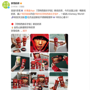 据了解,9月14日,奈雪的茶微博宣布推出两款“范特西音乐宇宙”联名奶茶,分别为金色山脉蛋糕珍珠奶茶、金色山脉蛋糕奶茶,今日全国上线。