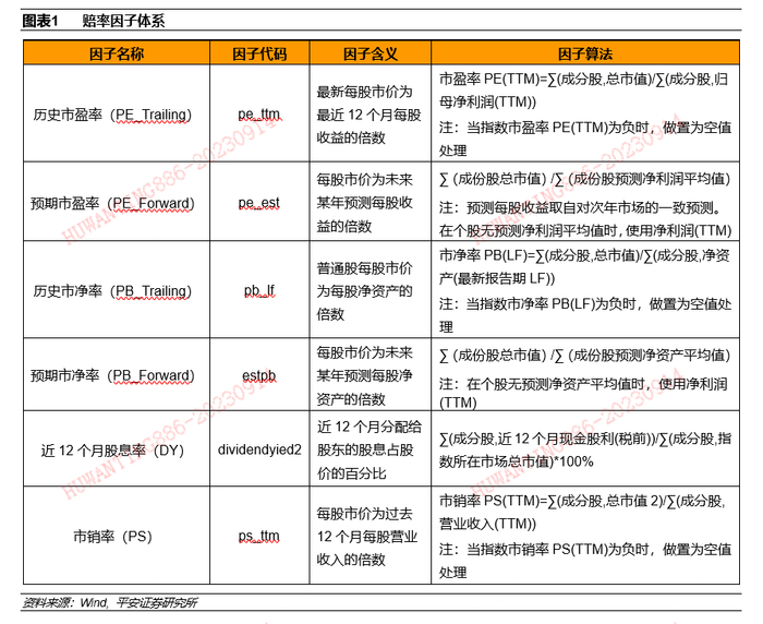 赔率衡量资产预期收益与亏损的比值,基于赔率的交易策略能够在获得足够安全边际的前提下分享市场上涨的盈利,缺点在于等待盈利周期相对长。赔率交易的核心在于,寻找估值长期中枢,避开“价值陷阱”。基于估值的均值回复特征,估值指标可以较好地衡量资产赔率。我们使用市盈率、市净率、股息率和市销率构建了赔率因子体系,基于Fed模型补充了权益风险溢价ERP,能够衡量股票对债券的相对价值,较全面地刻画了股票赔率。