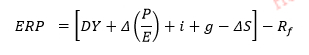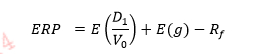 在Gordon Growth Model(戈登股利增长模型)中,加入了股利用于估算股票的内在价值,ERP是通过将预期股息率和股利增长率的和减去无风险利率得出的: