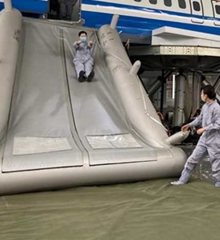 “根据民航适航规章中要求,凡是客座量大于44座的客机,必须保证其最大乘坐量的乘员能在应急情况下90秒钟内从飞机撤离至地面。”航科院刘蔚然介绍。“从适航设计上要求航空器在一半出口不可用时,仍可在90秒之内撤离所有人员。”