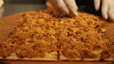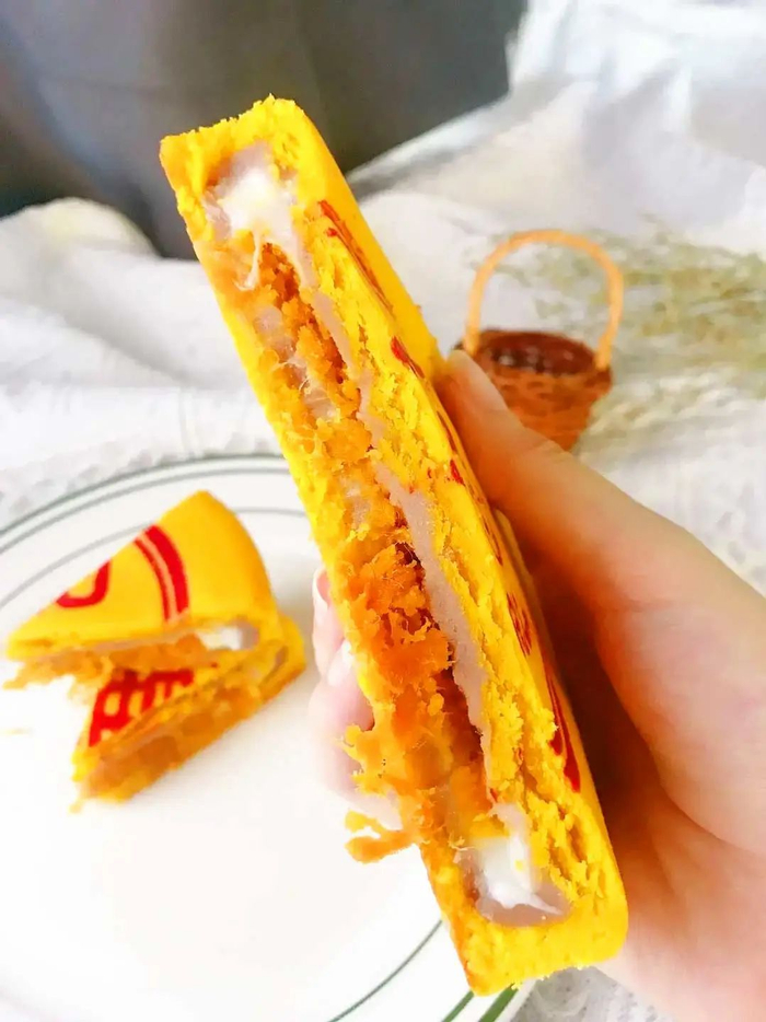 咸香酥脆的肉松与细软沙香的咸蛋黄,渐渐涌现