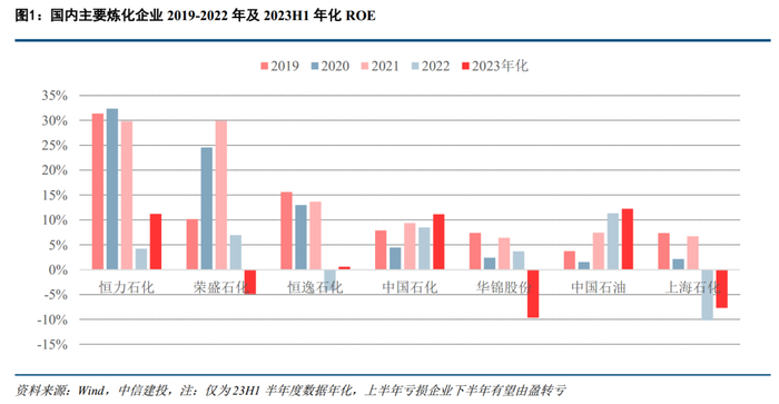 过往几年,大炼化板块整体波动较大。2021年,国际油价稳步温和上涨,民营大炼化板块基本保持较高盈利水平。进入2022年,受地缘政治影响,俄乌冲突爆发以及西方国家对俄罗斯一系列的经济制裁推动油价一路飙升;Q2,俄罗斯原油因制裁供应量下降,进入5月后,乌克兰最大炼油厂受到打击,同时美国汽油价格跃升至历史最高价位,以及中国疫情缓和以及北半球夏季旅行高峰季节将至,成品油需求将增长,国际原油价格全面上涨,下半年开始油价整体中枢有所下移,但仍维持在较高水平,同时石化下游产品受疫情反复、需求等因素影响,板块内公司价差缩窄,盈利能力下降,尤其是Q3、Q4,业绩普遍受损严重。23Q1,随着油价趋稳以及需求逐步复苏,板块内公司盈利处于减亏或回正的过程中;23Q2,需求持续复苏,产品价格价差回暖,板块内部分公司盈利能力改善明显。当前板块整体仍处于较低估值水平和右侧位置,后续随着需求复苏和产业链价差盈利恢复,板块和公司盈利能力有望边际改善。