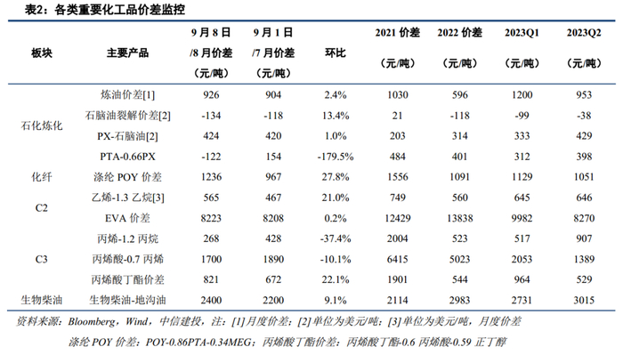 9月8日,布伦特原油价格为90.65美元/桶,周环比上涨2.37%;WTI原油价格为87.51美元/桶,周环比上涨2.29%;布伦特-WTI价差为3.14美元/桶,周环比上涨4.67%。