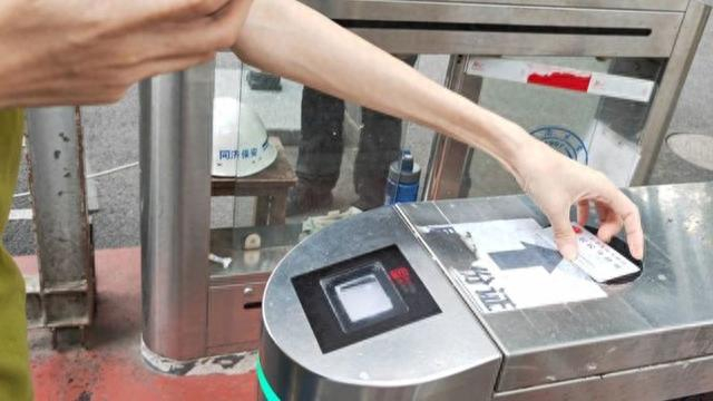 校外人员正在刷身份证进入同济大学。 李蕾 摄