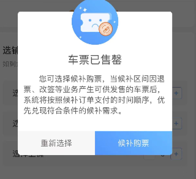 此外,乘客人数较多的情况下,高铁动车也有可能出现由8节车厢改为12节车厢的情况,候补购票可以更快买到票。