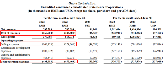 重要的是,与前两个季度不同,本季度高途的盈利并不是靠大力“降本增效”实现的。报告期内,高途的销售费用同比增加20.48%至3.24亿元,运营开支为4.75亿元,同比增长8.5%,收入成本也同比增长15.3%至1.84亿元。对于费用支出的增长,高途提到了人工费用上升以及市场推广活动支出增加,同时股权激励费用的下降部分抵消了人工及市场费用的上涨。