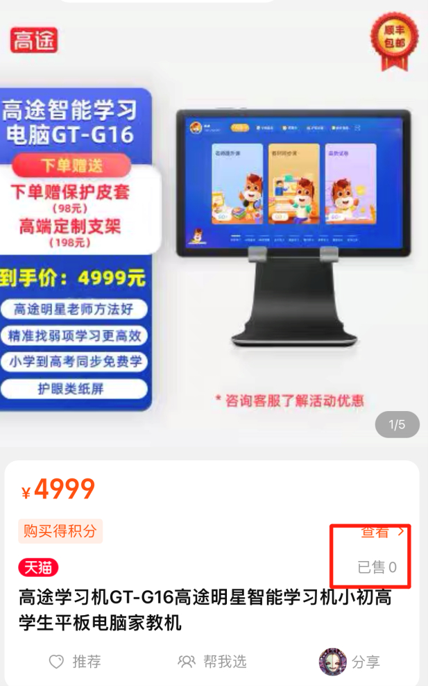 宣传方面的保守,似乎显示出高途底气不足。据高途透露,二季度旗下智能学习内容和产品的收入贡献不足5%。去年,高途曾经推出智能学习机、扫描翻译笔等产品,但目前淘宝的“高途教育旗舰店”里,仅上架“高途学习机GT-G16”一款硬件产品,已售为0。