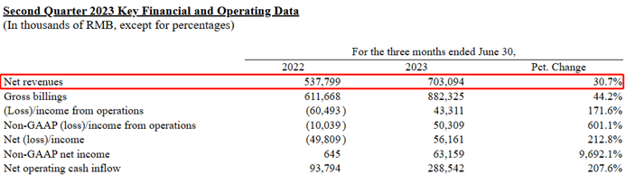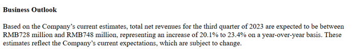 财报中,高途给出了下一季度的业绩指引,根据公司目前的预测,2023年第三季度的净收入总额预计在7.28亿元-7.48亿元之间,同比增长20.1%至23.4%。