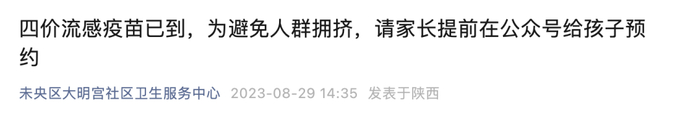 儿童接种:「丈八社区卫生服务中心」公众号预约(周一至周五全天接种、周六上午半天接种,请提前一天接种早上7点网约号段,按你最终预约时间现场接种)