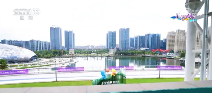 一边看比赛,一边赏风景,将是观众在这座亚运场馆的独特体验。往北远处高楼林立,近处就是凤栖湖,湖边矗立的椭圆形建筑是德清国际会议中心,也是(首届)联合国地理信息大会的会址。德清地理信息小镇是中国首个地理信息产业化小镇,在这里能够感受小镇的数字活力。往南则绵是延起伏的山峦,可以欣赏到小镇的自然风光。因此,这里不仅将带来三人制篮球的精彩赛事,也将成为当地向世界展示城市风貌的一个窗口。