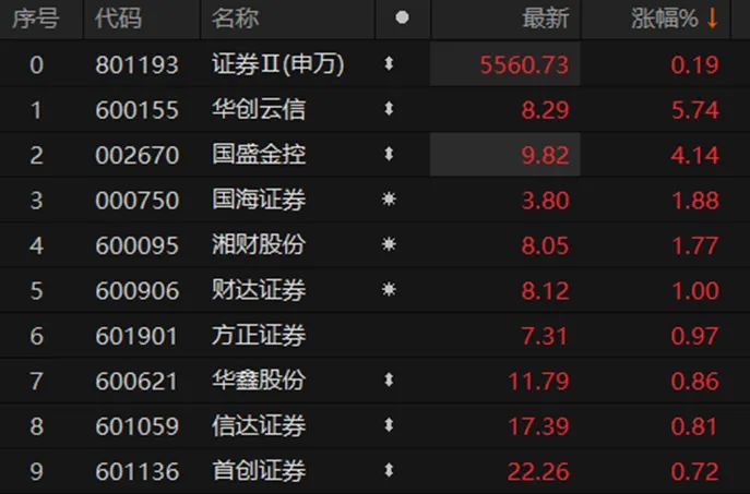 券商板块涨幅排名