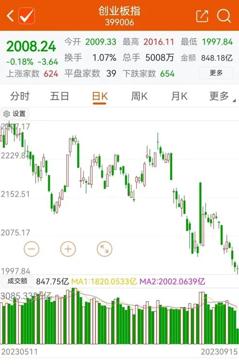 今日早盘,A股三大股指盘初一度下挫,创业板指最低探至1997.84点,为2020年5月以来首次跌破2000点大关。随后部分指数权重股奋力拉升,带动创业板指又一度翻红,创业板指2000点大关保卫战正式打响。