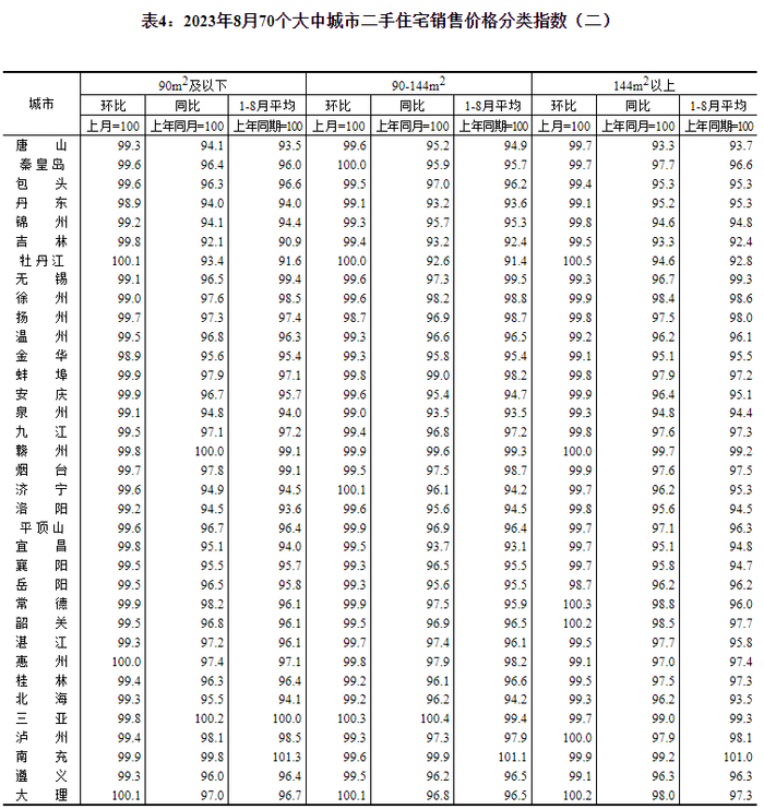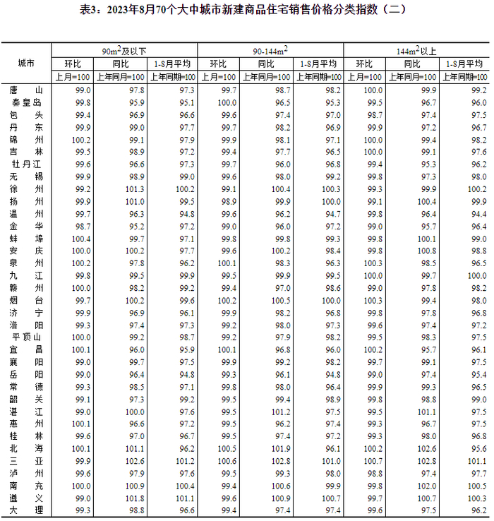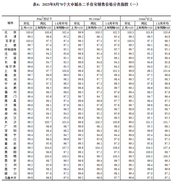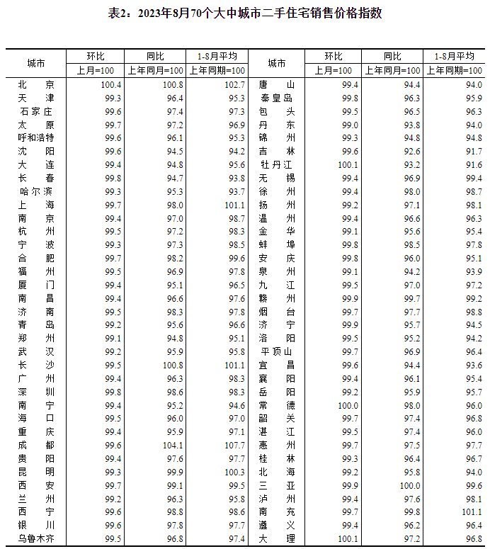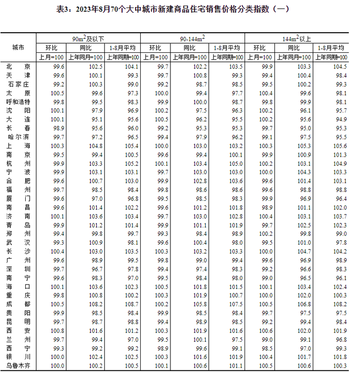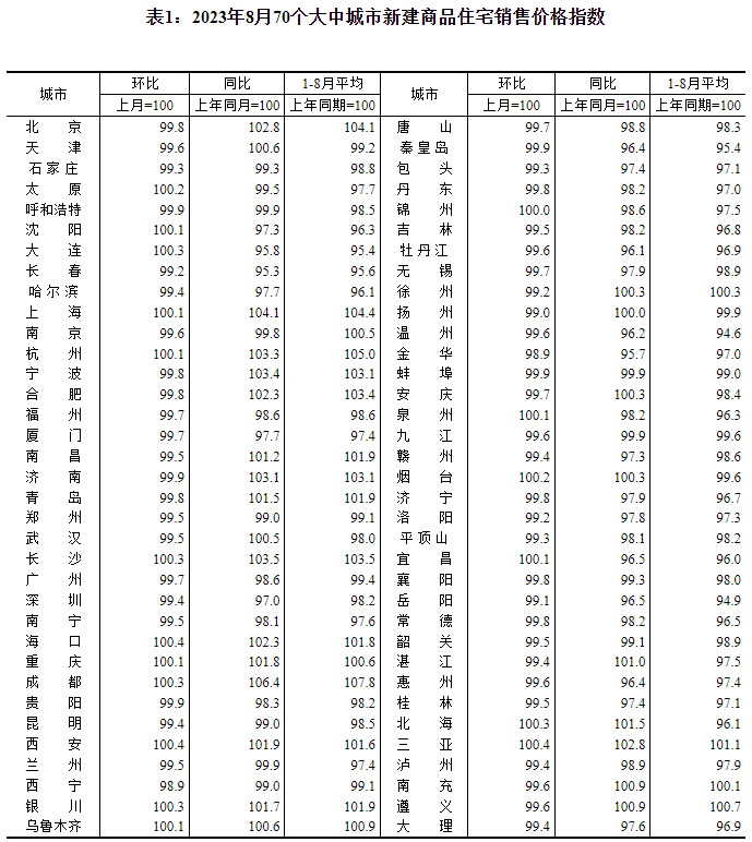 9月15日,国家统计局公布2023年8月份70个大中城市商品住宅销售价格变动情况。