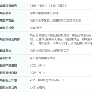 近日,记者从广东省投资项目在线审批监管平台查询到,绿梦大熊猫馆建设项目已通过备案,项目状态显示为“办结(通过)”。