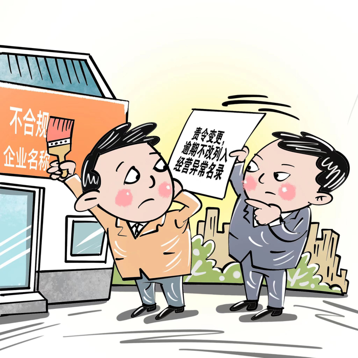 16.企业登记机关发现已经登记的企业名称不符合相关规定的,应当依法及时纠正,责令企业变更名称。企业应当自收到企业登记机关的纠正决定之日起30日内办理企业名称变更登记。如果企业逾期未办理变更登记,将会被列入经营异常名录。