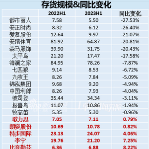 截至2023年8月31日,纺织服装行业上市公司大部分已完成2023年中报的披露。除了市场普遍较为关注的业绩增速之外,纺织服装行业上市公司的库存问题往往尤为值得关注。库存高企或已成为纺织服装行业的一个噩梦,在侵蚀企业盈利的同时,也在让资本市场对服装行业望而却步。