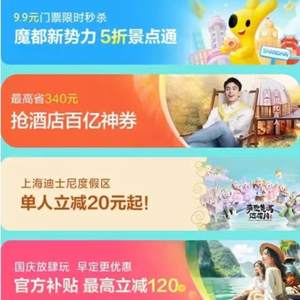 旅游节期间,美团门票将面向全国消费者启动景区门票大促,预售门票提前囤、3折起,可随时退、过期退,还可抽66元旅游提前订红包,活动涵盖上海迪士尼、玛雅水上乐园、上海野生动物园等热门景区。