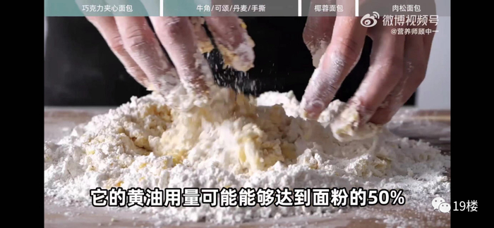 这类面包的脂肪含量仅次于巧克力夹心面包。大家看到的层层叠叠、酥酥脆脆的酥皮、分层,是裹入了大量黄油再多次折叠才形成的。