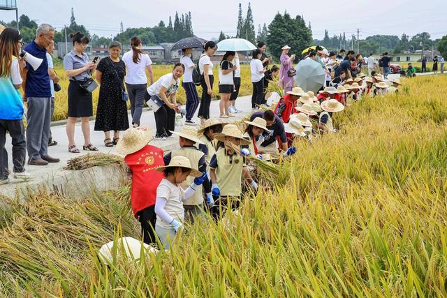 9月15日,岷江村的稻田里来了80名小学生,在家长的陪同下,孩子们成为“小农人”。家长们告诉记者,与农事进行一次亲密接触,到成都近郊的农田“走走看看”,体验乡村里的中国式现代化的万千气象,已经变成80后90后父母的遛娃新方式。